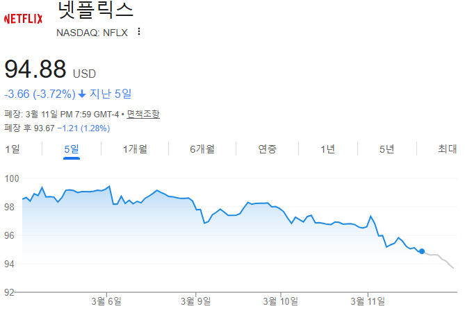 현재 넷플릭스의 주가는 그동안의 폭발적인 성장성과 계정 공유 금지 정책에 따른 단기 수익성 개선 기대감이 선반영되어 다소 높은 밸류에이션을 형성하고 있습니다. 문제는 만약 올해 2026년 하반기에 접어들면서 글로벌 거시 경제의 침체 우려가 본격화되거나 예상보다 신규 가입자 증가세가 빠르게 둔화되는 조짐이 가시화될 경우입니다.