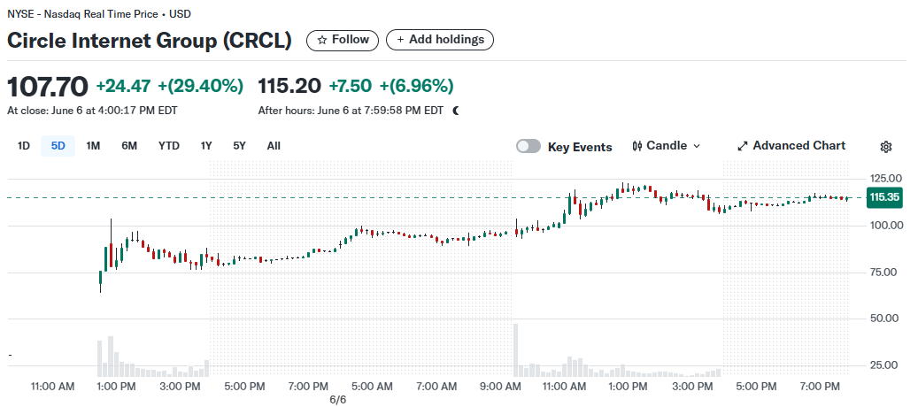 Circle의 IPO는 정말 뜨거웠어요! 처음 주식을 팔기 시작한 날, 주가가 $31에서 최고 $103.75까지 치솟았고, 첫날에만 168%나 올랐어요! 이틀째에도 상승세를 이어가면서, 공모가(처음 팔린 가격)의 3배가 넘는 가격으로 거래되기도 했답니다. 종가 기준으로 시가총액이 무려 약 23조 원(167억 달러)을 돌파하며, 상장 전 예상했던 기업 가치의 약 3배에 달하는 규모로 불어났어요. 폭발적인 주가 상승은 다음과 같은 이유들 때문입니다.