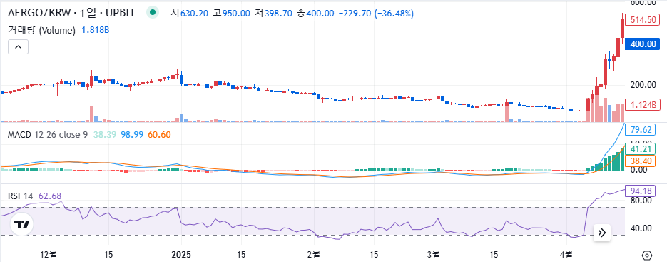 국내 블록체인 프로젝트인 아르고 AERGO가 2025년 4월 중순부터 급격한 가격 상승세를 보이고 있다. 특히 4월 16일에는 업비트 기준 하루 거래량이 1조 원을 돌파하며 단기 테마주의 흐름을 보여주고 있다. 불과 며칠 전까지만 해도 300원대에 머물던 아르고는 700원 이상으로 급등하며 투자자들의 이목을 끌고 있다. 그렇다면 이 급등의 배경은 무엇일까요? 오늘 포스팅에서 알아보도록 하겠습니다.