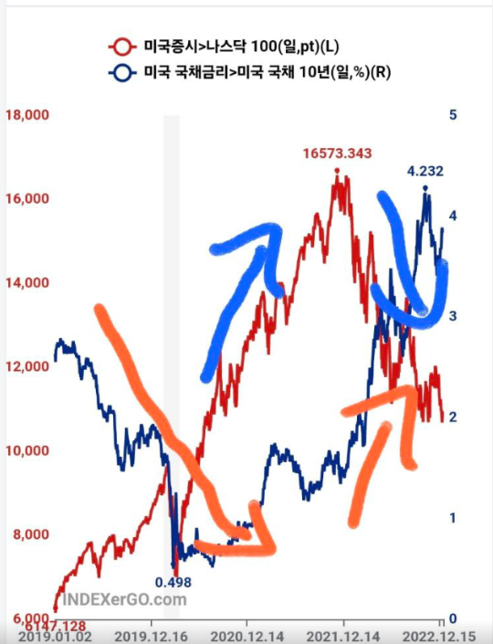 국채금리가 내려가면 주식은 올라가게 되어 있다.