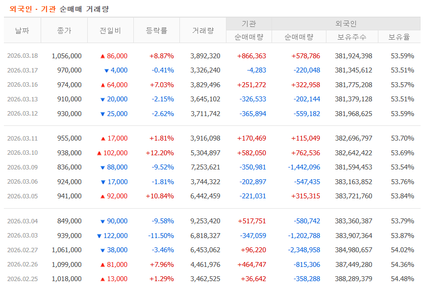 반면 외국인들은 이 물량을 고스란히 개인들에게 넘기며 정반대의 포지션을 취했습니다. 과연 11조 원을 베팅한 이웃님들의 뚝심이 맞았을지 그리고 지금이라도 늦지 않았으니 올라타야 할지 명확하게 짚어드리겠습니다.