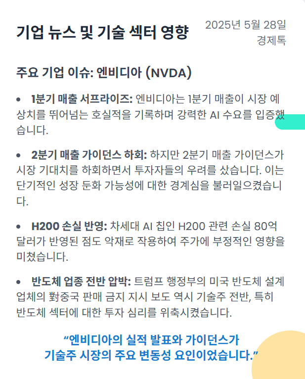 [2025.05.28 미국증시브리핑] 엔비디아 가이던스 실망과 거시경제 요인에 따른 하락 마감