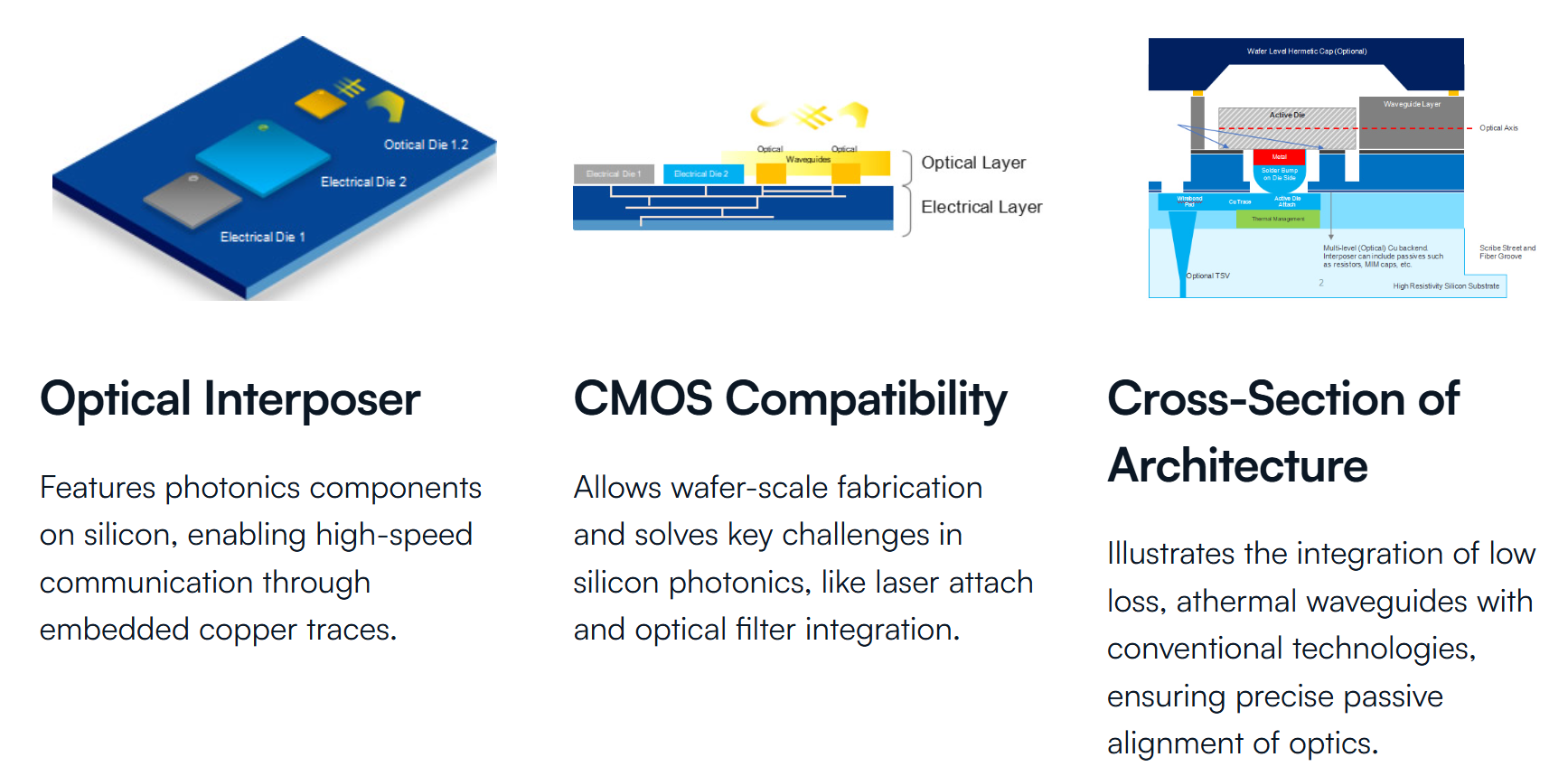• 광학 인터포저의 혁신: 기존의 복잡하고 비싼 광학 조립 과정을 반도체 공정처럼 단순화합니다.